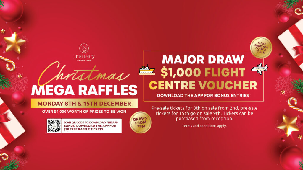Join us for two huge nights of festive fun at our Christmas Mega Raffles on Monday 8th and Monday 15th December. With $20 scoring you 500 numbers, there are incredible prizes up for grabs for everyone in the family — over $4,000 worth!