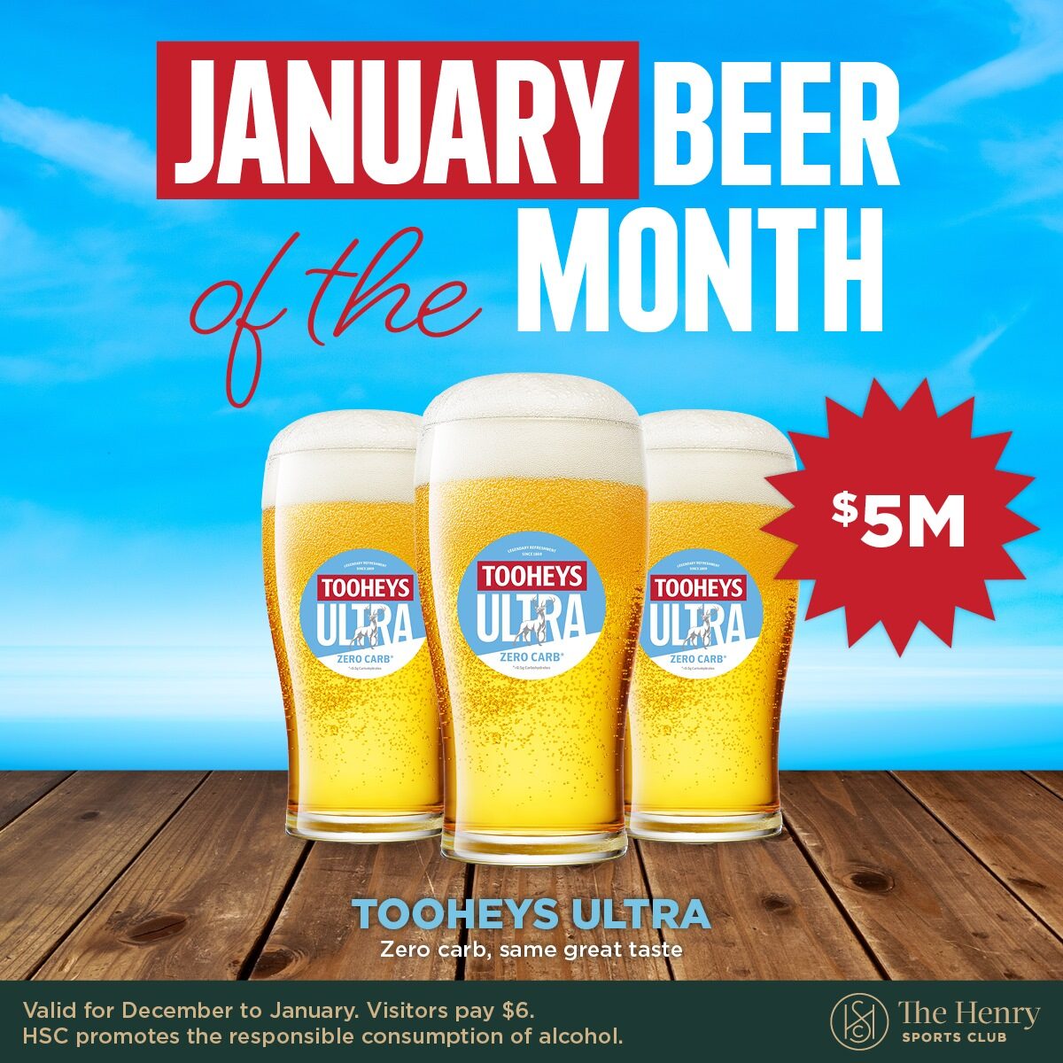 Cool down this January with Tooheys Ultra—Zero carb, same great taste!